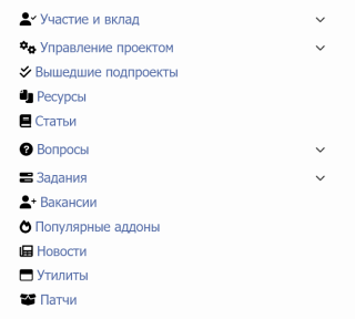 Основной способ навигации по содержимому проекта - его контекстное меню. На настольных ПК оно находится сбоку, на смартфонах нужно кликнуть на проект в верхней панели.