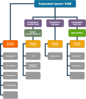 Суперпроекты - это проекты, которые могут включать в себя обычные проекты. Так образуется иерархия. Самый главный проект — это XGM.