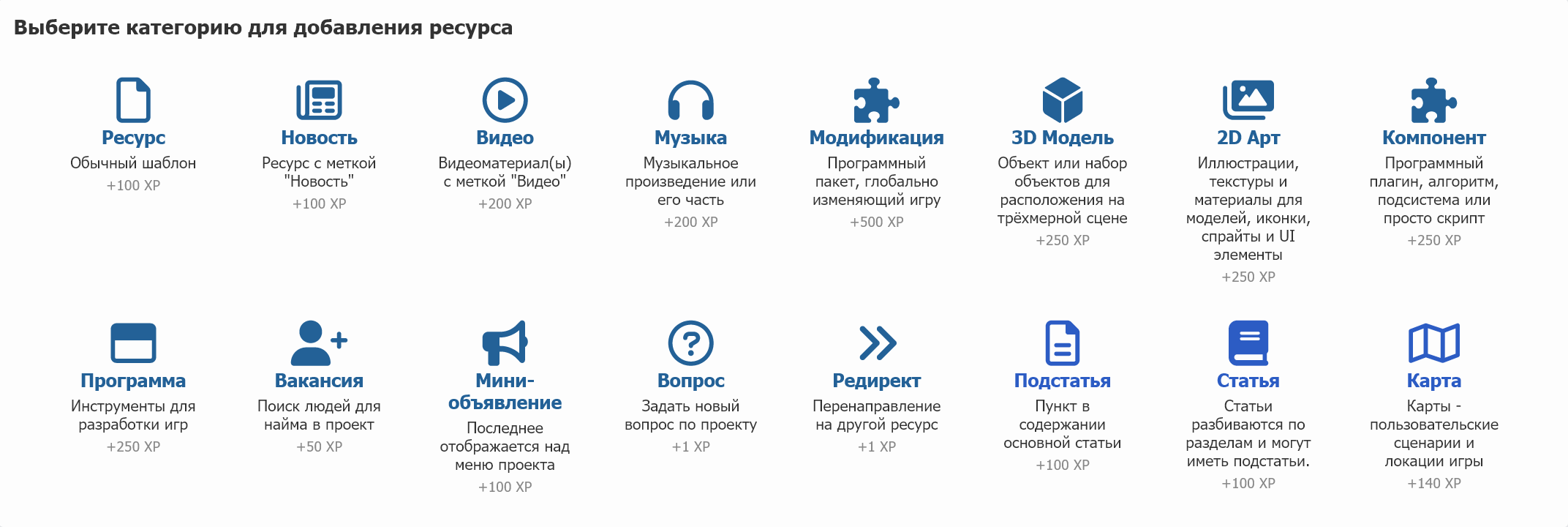 Ресурсы можно планировать на даты или скрывать внутри проекта. Лучшие попадают на главную сайта. Подробнее про оформление ресурсов.
