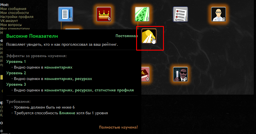 Начать стоит с новой системы способностей. Она была полностью обновлена - добавлены эффекты от способностей (видны в профиле пользователей) и уровней, ветвления, автоматические зависимости и многое другое.