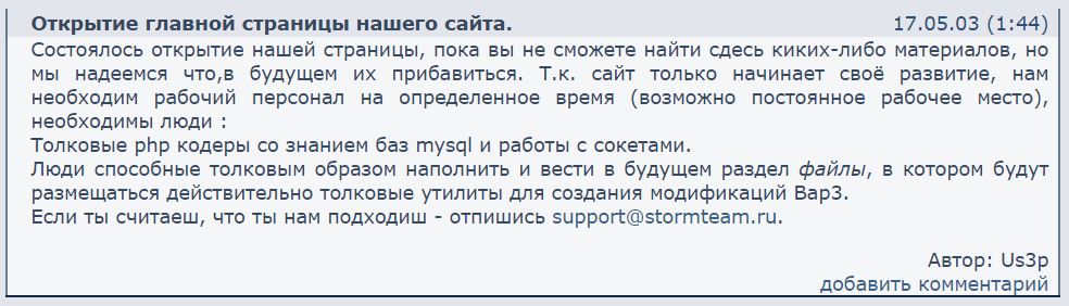 Хотелось бы восстановить всю известную историю, начиная со штормы и Айса. Без каких-то личных мнений, переперательств и прочей "отсебятины", только факты. Каждый человек рассказывает ту сторону истории, которую он видел, о которой он знал. Просто хотелось бы полностью сложить этот паззл из кусочков, а то создается ощущение, что никто не знает всего об этом...