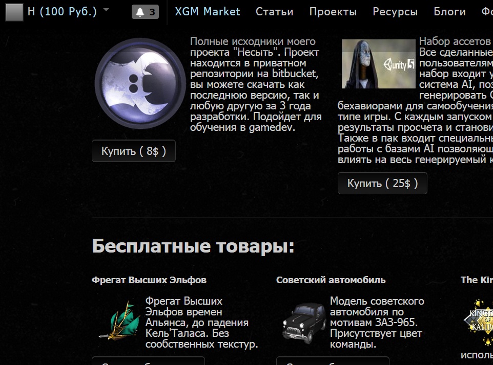 Мы наконец то запустили магазин XGM Market. На данный момент он находится в бета тесте, и сейчас там только товары пользователей с которыми мы сотрудничали последний месяц разработки. Через неделю мы планируем открыть магазин для свободно продажи, вы сами сможете добавить любой товар в тематику сайта и заработать некоторую сумму. Вместе с этим мы добавили валюту XGM Money. Каждому из пользователей который уже достиг 10 уровня, получит на свой лицевой счет XGM 100 рублей. На эти деньги вы сможете купить любой товар в магазине.