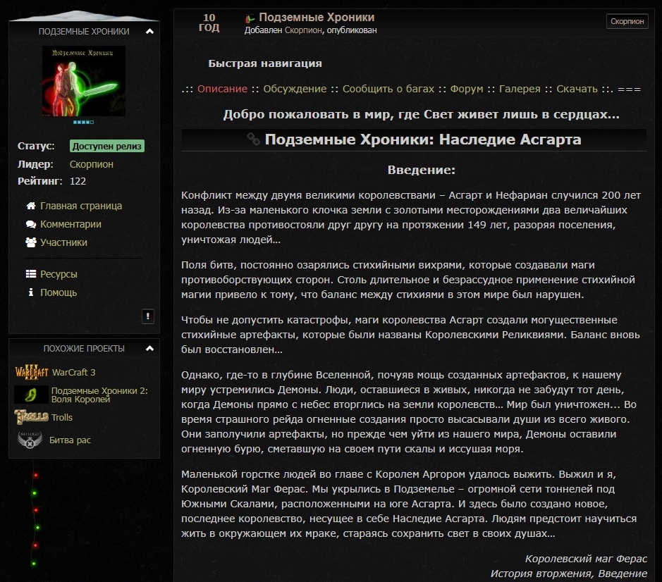 Несмотря на свои недостатки, Подземные хроники являются одной из лучших карт в жанре RPG для Warcraft 3. Огромное количество квестов и диалогов. Атомсферный мир. Море монстров и лута. Всё это даёт этому проекту неоспоримое преимущество перед остальным безликим множеством рпг карт на Warcraft 3!