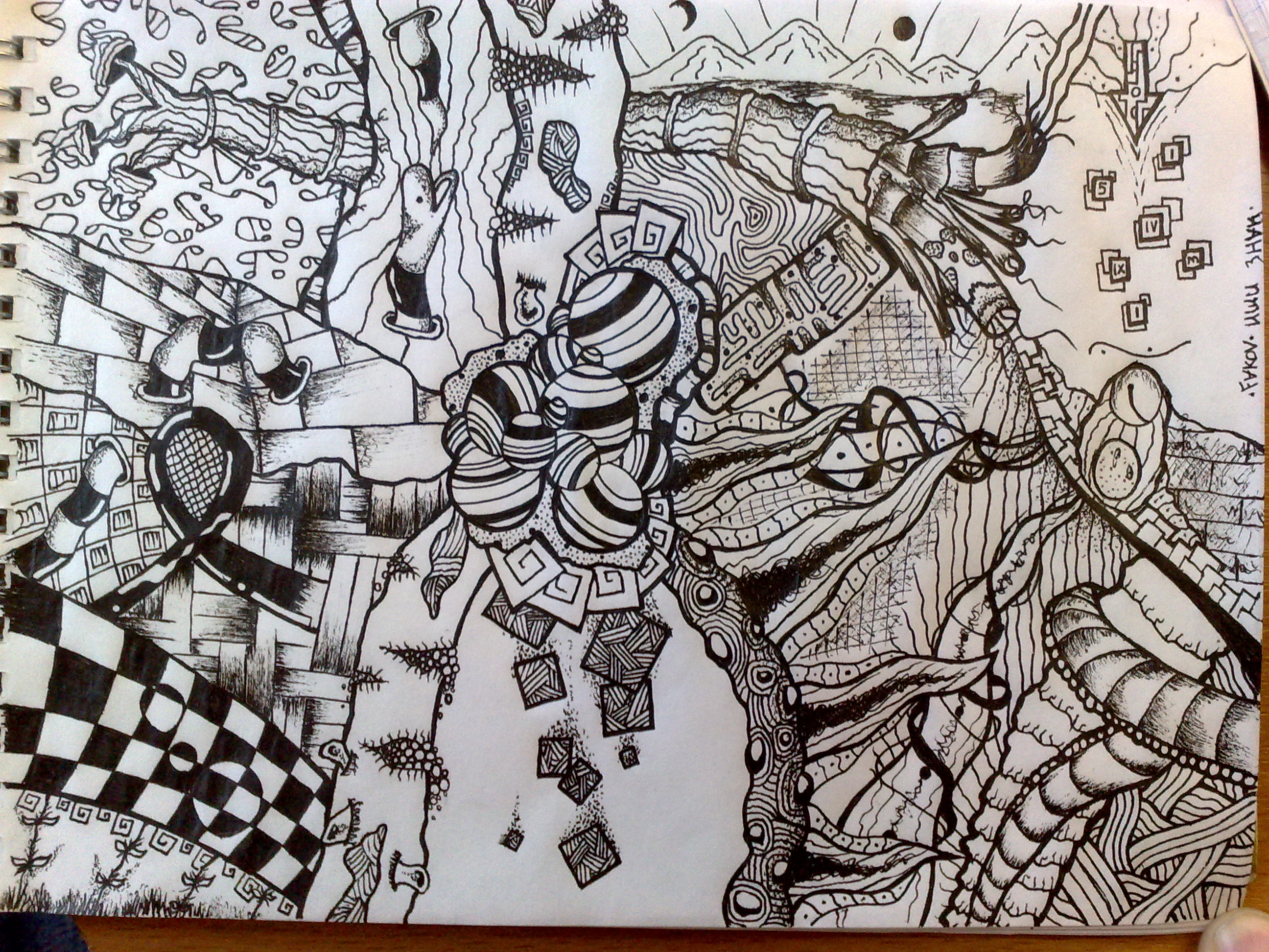 Я кажется еще не знакомил никого с психоделичными рисунками собственной кисти? Прошу. Начнем мы с путешествия в олдскул. Я только слез с листиков в клеточку и маленьких блокнотиков. Впереди меня ждали блокноты А5 с девственно чистыми страницами.