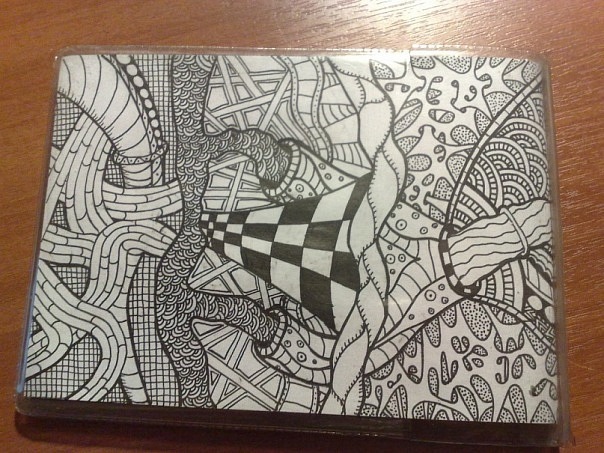 Обложка блока, сделана полностью с нуля, включая саму обложку(изначально у тетради обложка была какая-то цветастая с унылым рисунком). Увы, сделана только с одной стороны