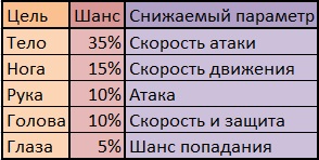 Если что-нибудь из этого есть у юнита, то игра сама рассчитывает шанс, а триггерная система рассчитывает эффект. Эффектов всего 5, но из них 2 повторяются (повреждение рук и ног).