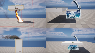 Здесь показано интересное использование систем симуляции жидкостей и симуляции огня Niagara Fluids для UE5.