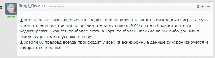 Я написал про нынешние тенденции , которые торжествуют на XGM, что на сайте что в дискорде. Некоторые личности пытаются унизить и уничтожить карты на 1.26, не зависимо от того какие они. Навязать новые стандарты LUA и фреймов, если карта на Рефордже с фрейми, то она автоматически шедевр. А если же на патче 1.26 и там будут РО механики - криты, вампиризмы, баши и тд, то это будет означать то ,что это карта 15 летней давности и геймплей на дне. Не воспринимай мои слова как личный хейт. я больше сюда писать ничего не буду. Так после этого меня ожидает очередной мут на 24 часа