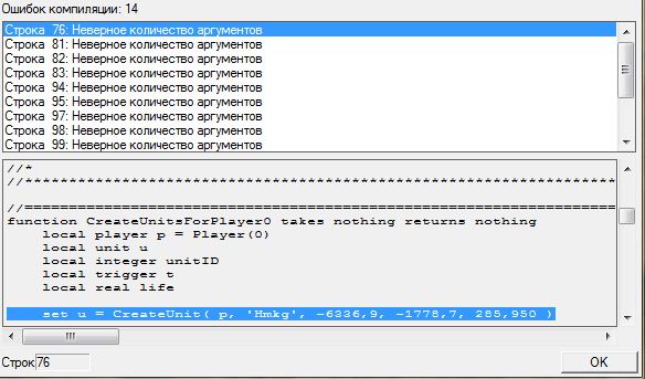 Ошибка 9: set u = CreateUnit( p, 'nmh1', 2528,0, -6944,0, 270,000 )