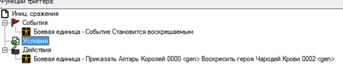 Да, про этот костыль я уже додумался. Еще одлин в голову пришел. Но тк нужно сделать этот триггер для компьютера, то не выходит. Триггером заставить выделить в выбор алтарь и действием "имитировать нажатие клавиши игроком" (установить нужную клавишу, что бы совпадала с горячей клавишей создания героя), и после этого он начнет воскрешаться. Но на ИИ не действуют действия типа выбрать для игрока или имитировать нажатие клавиши. Вот такое вот..