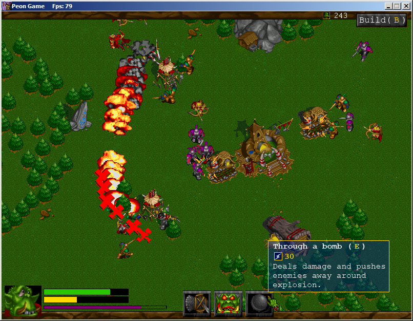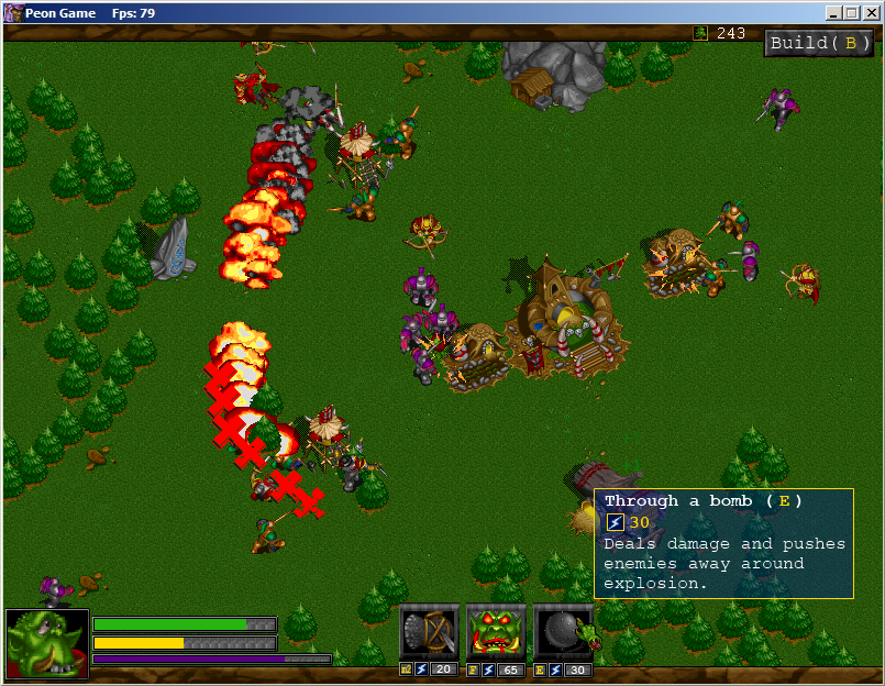 В общем говоря, я всё таки пытаюсь доделать более полную, недырявую версию Тимур, не совсем понял, что значит, поворачивать пеона? Пеон всегда повернут в сторону курсора, управление в игре осуществляется так же с помощью мыши (наводить способности, на ЛКМ удар/рубитьдерево/ченитьздание на ПКМ кинуть топор)