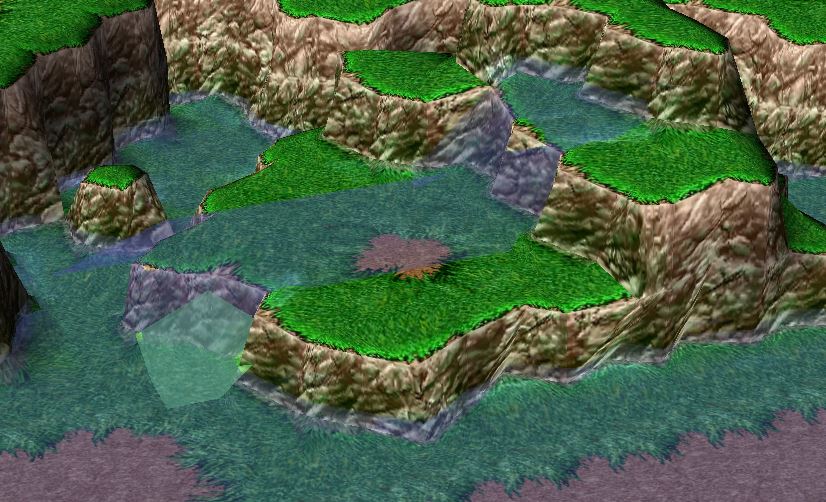 Вот, пожалуйста. Это произошло из-за того, что на одном уровне у меня оказались типы ландшафта "снизить на 1" и "неглубокая вода". Точнее, неглубокая вода присутствует сразу на двух соседних уровнях, разность высот которых единица. Тебе осталось просто поиграться с ландом в таких же условиях. Это получится не сразу, т.к. я вот вообще не понимаю, как работают кисти в вк3. Скрин сделан с самой новой версии вк3.