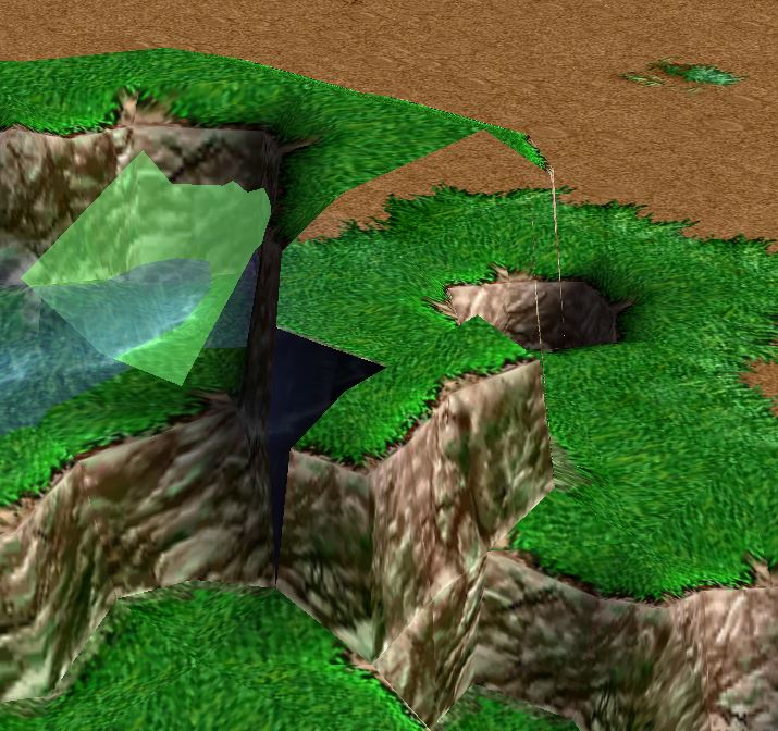 Я смог добиться ровно противоположного эффекта: вода посреди ровной местности.