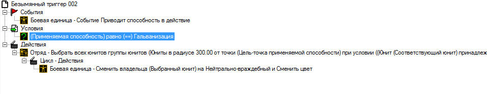 Omg_bounty_lord, тебе же сказали же, что выделяешь юнитов группу. А там есть разные варианты: вокруг героя, в области, в регионе, юниты игрока, или всех на карте. далее есть фильтры-условия, которыми можно отсеивать не нужных