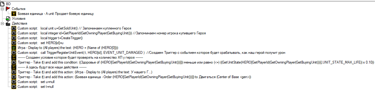 call TriggerRegisterUnitEvent( t, HERO[id], EVENT_UNIT_DAMAGED ) //Создаем Триггер с событием которое будет срабатывать, как наш герой получит урон