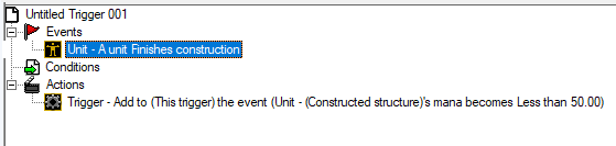 Ну один из самых простых способов Сделать триггер: Юнит завершает строительство => Триггер: добавить новое событие: (указать нужный триггер) Мана (Построенное здание) > 50.0 Скрин в приложении. Вместо This Trigger указываешь свой