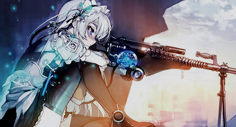 Чайка носит большущий гроб за спиной, в котором носит скрипку магострел - аналог снайперской винтовки, с расширенным диапазоном применения, стреляет магическими зарядами, от заклинания зависит эффект (не только разрушительный), подключается проводом к шее стрелка, что мне кажется вполне логичным. По ходу аниме оказывается, что гроб очень многофункционален, если таскать его повсюду за собой, но тем не менее, это обычный гроб.