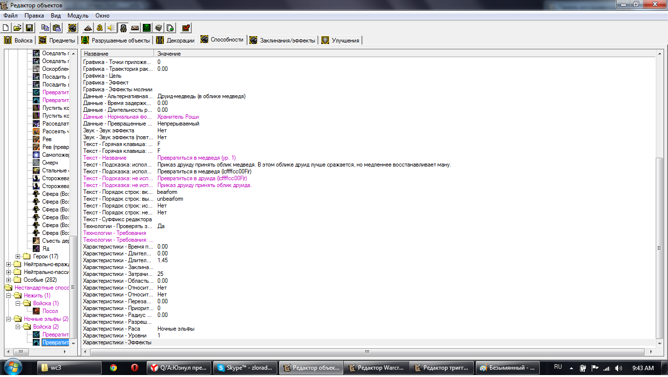 ребят, теперь другая проблема, но я решил написать здесь, может зря. Я сделал все что хотел, но облом. Я дал друиду способность переродиться в медведя, он превращается, меняю его обратно, а он сначала превращается в медведя-друида, а не в моего перса, а потом появляется мой перс и дохнет, потом встает, но уже без способностей вообще! Как так?