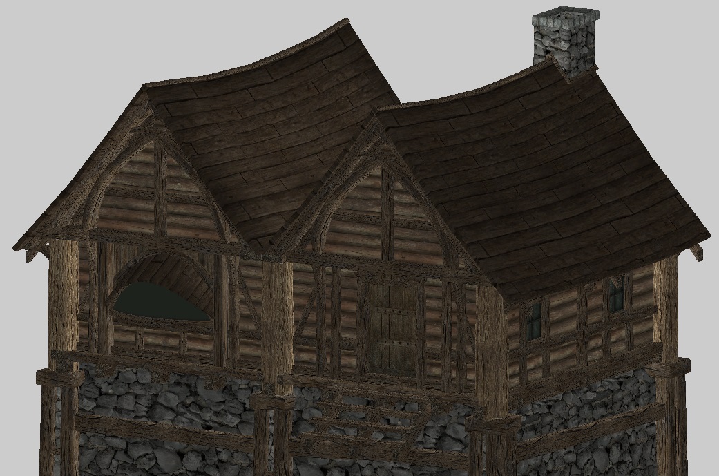 Работа над восьмым свитком идёт полным ходом, на данный момент готова 21 минута полностью, и сейчас пришло время для следующей новости. В ней я продолжу знакомить вас с ландом деревеньки, в которой будут разворачиваться основные события. Первое, скрины моделек домиков деревеньки: