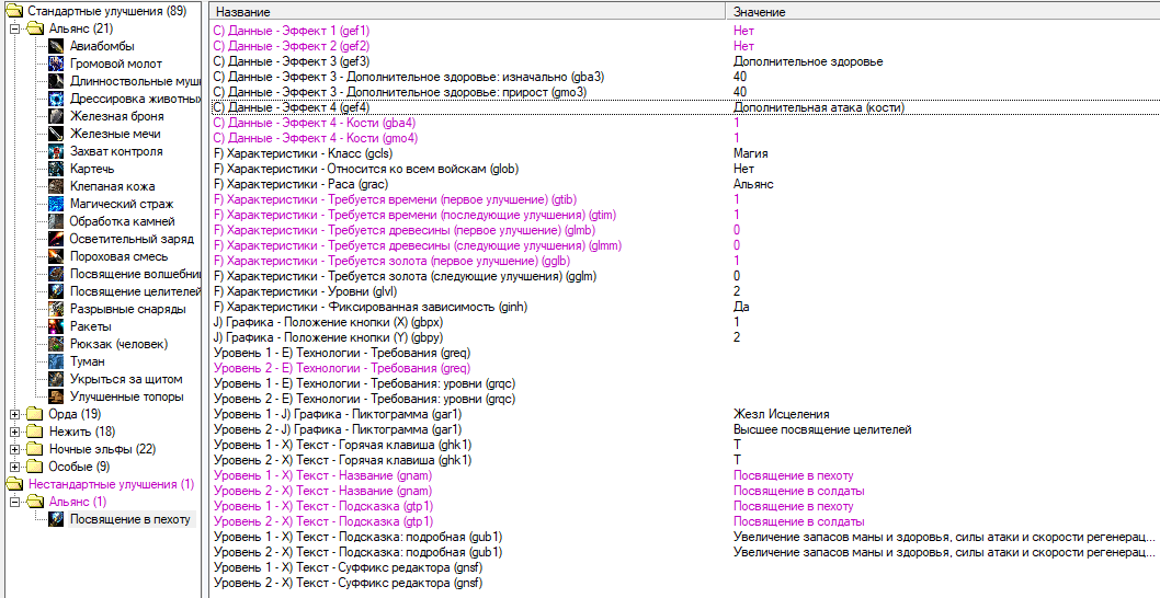 Кстати, есть еще 1 момент. Если ты хочешь наделать несколько копий таких рангов, то тебе придется обнулить константу описания "Увеличение запаса маны и скорости ее восстановления, ..." ибо оно меняется глобально (в игровом интерфейсе). Если тебе не нужен ранг целителя и ты его заменишь на новый ранг для другого юнита, то можешь просто изменить описание на свое, иначе просто сделай там пустую строку: