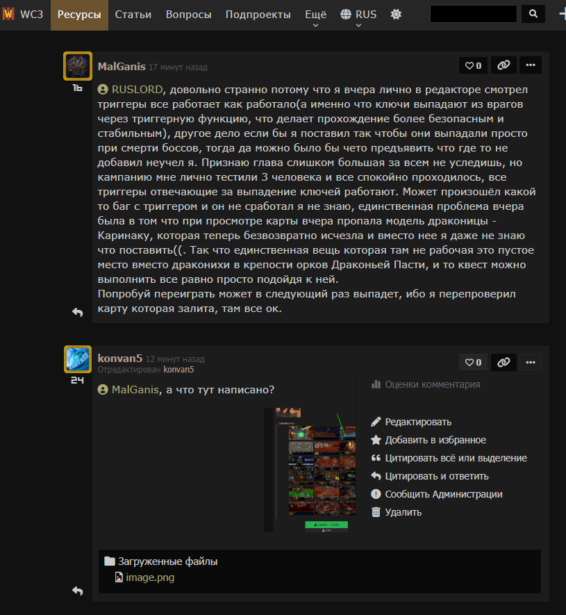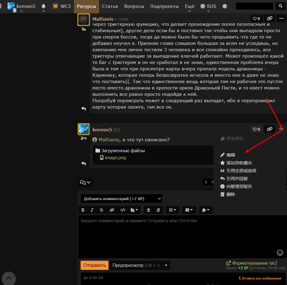При повторном открытии страницы все окей... Пока не уверен, как баг воспроизводится. Я тогда написал коммент, вставил картинку (загрузил) но не вставил в текст. Отправил коммент. Потом решил отредактировать, чтобы вставить картинку в текст, и увидел китайский.