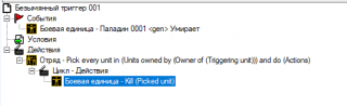 Если умер определенный юнит - то выбрать всех юнитов игрока (владелец (триггерного юнита)) и убить (выбранного юнита).