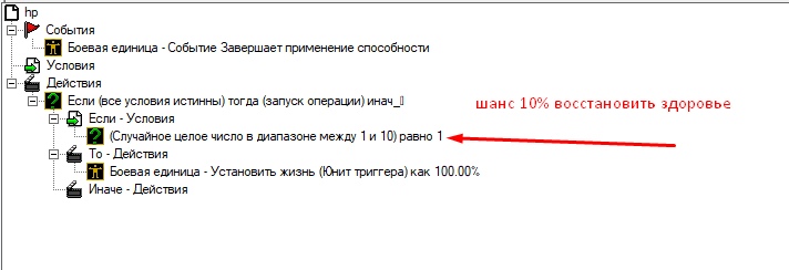 Самый коряво-триггерный вариант по твоему описанию после применения способности (в данном случае любой способности) с шансом восстановить полностью здоровье: