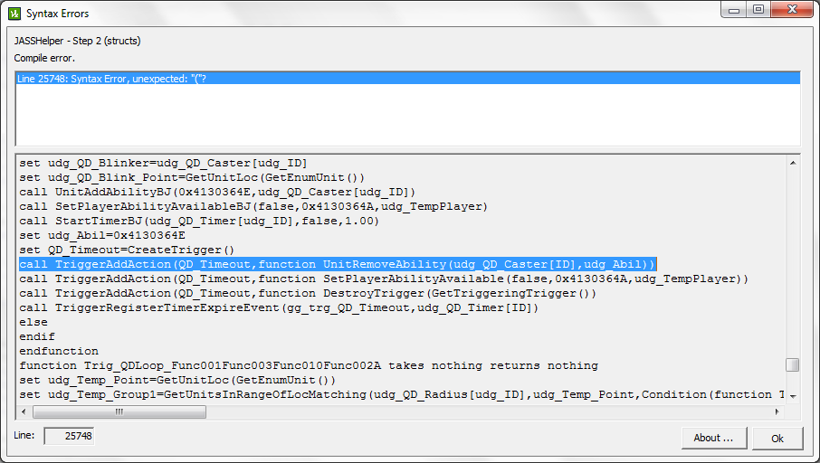 » WarCraft 3 / Syntax Error, unexpected: "(" ? - Ошибка в Jass.
