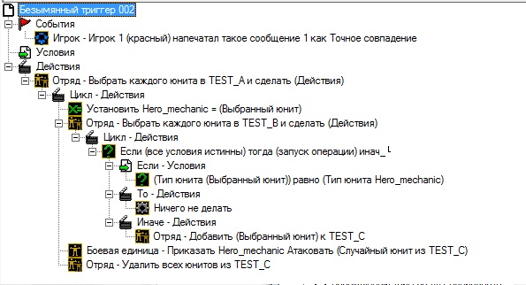 Предварительно в группу ТЕСТ_А включаем всех основных героев, в группу ТЕСТ_B включаем все копии.